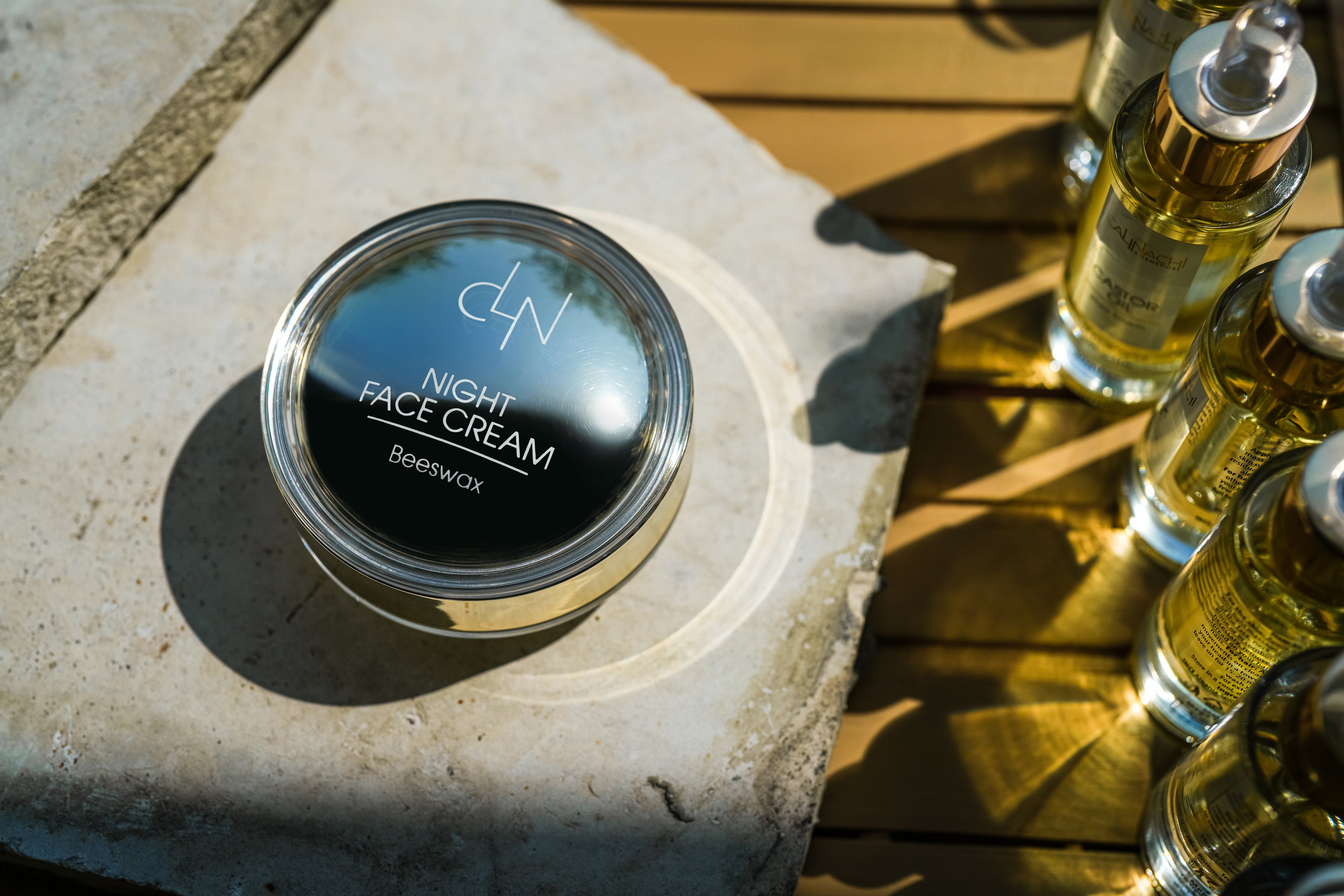 Crema nocturna: Sutil aroma floral, textura rica pero de rápida absorción que proporciona un acabado satinado.